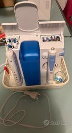 Set : IDROPULSORE ha diverse modalità di pressione per pulire in profondità sotto il bordo gengivale e SPAZZOLINO elettrico con diverse modalità di pressione.