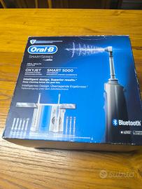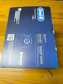 Vendo spazzolino piu ricsmbi NUOVO ancora imballato Oral-B Oral Center kit di igiene orale Oral-B combina l’intensa azione pulente dello spazzolino Oral-B Smart 5000 Cross Action con l’idropulsore Oral-B Oxyjet. Lo spazzolino Oral-B Smart 5000 è dotato di 5 modalità di spazzolamento: Pulizia Quotidiana, Pro Clean (Pulizia Profonda), Denti Sensibili, Sbiancante e Protezione Gengive. Oral-B Smart 5000 ti aiuta a migliorare le tue abitudini di spazzolamento grazie alla tecnologia di connessione Bluetooth che ti offre suggerimenti in tempo reale sulla tua attività di spazzolamento. Grazie alla tecnologia con microbollicine, l’idropulsore Oral-B Oxyjet pulisce in profondità sotto il bordo gengivale, eliminando i batteri nocivi per l’igiene orale. Tramite il quadrante di controllo dell’idropulsore Oral-B Oxyjet, inoltre, è possibile regolare la pressione dell’acqua, aumentandone o diminuendone l’intensità.