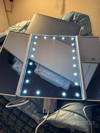 Vendo specchio da trucco LED Infitrans in ottime condizioni / come nuovo, mai usato praticamente. Caratteristiche principali: •Illuminazione LED regolabile (touch) •Design pieghevole e compatto •Specchio principale + ingrandimento 3x per dettagli perfetti •Alimentazione a batteria o USB 📦 Incluso: specchio e cavo di alimentazione originale. Perfetto per trucco, skincare o manicure, ideale sia in casa che in viaggio. Vendo per inutilizzo.