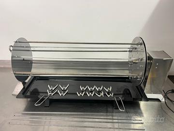 Vendesi spiedo nuovo in Acciaio Inox Completo di 12 fermi Dodici spade 90 cm Leccarda Motore portata 38 kg Altezza 38 cm Lunghezza totale 112cm 23 watt 220v