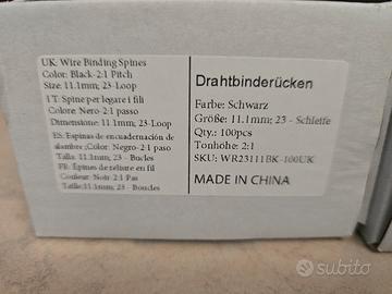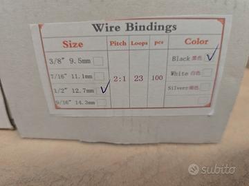 vendo x errato acquisto 3 scatole di spirali passo 2:1 3 scatole da 100 pezzi cadauna di spirali metalliche colore nero PASSO 2:1 in 2 misure 12.7 (200 pezzi) e 11.1 (100 pezzi) pagate 90 , svendo a 50 non trattabili escluse spese spedizione