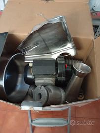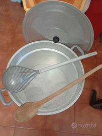 Spremi pomodoro elettrico + pentola in alluminio con coperchio + mestolo in alluminio grande e cucchiaio in legno grande, + fornello grande con riduttore di gas. Materiale tutto in ottime condizioni come nuovo