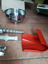 Potente, robusto e maneggevole con corpo motore da 225W, filtro e tramoggia in acciaio INOX, produzione fino a 150 Kg di pomodori passati all'ora, con separazione istantanea di bucce e semi.