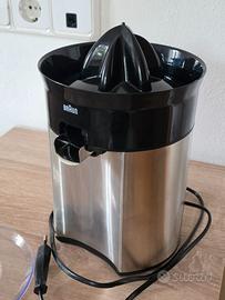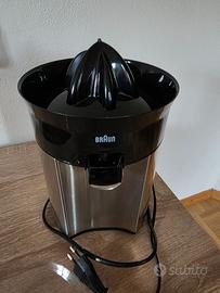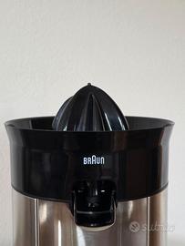 Vendo elegante spremiagrumi Braun modello nero/acciaio spazzolato nuovo, solamente testato e funziona perfettamente. Di seguito le particolarità: SPREMITURA RAPIDA: Lo spremiagrumi Braun Citrus Quick5 in acciaio spazzolato è semplice e pratico il succo appena preparato viene servito direttamente nel bicchiere; Semplice da usare, facile e maneggevole per il tuo apporto di vitamine quotidiano! TECNOLOGIA START/STOP: AVVIAMENTO A PRESSIONE: Assenza di tasti superflui per avviare lo spremiagrumi basta introdurre un frutto e per arrestarlo è sufficiente sollevarlo, per un’ottima praticità; Potenza 60W DESIGN CON ADATTAMENTO XL: Il beccuccio alto è progettato per adattarsi comodamente a bicchieri di altezza fino a 14 cm e consente di spremere quantità maggiori con una sola operazione. DIRECT SERVE il succo appena preparato viene servito direttamente nel bicchiere; SISTEMA ANTIGOCCIA Risultati impeccabili grazie al beccuccio rivolto verso l'alto per evitare di versare liquidi e sporcare; puoi addirittura utilizzare lo spremiagrumi direttamente in tavola; PRATICO dotato di base antiscivolo e coperchio di protezione; L'apparecchio si smonta in pochi passaggi consentendo di lavare le parti rimovibili in lavastoviglie; Venduto senza scatola originale.