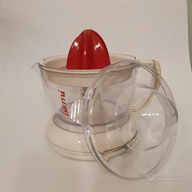 Spremiagrumi elettrico Girmi, dotato di brocca, coperchio e due coni di spremitura per agrumi di diverse dimensioni, si può smontare completamente per una facile pulizia