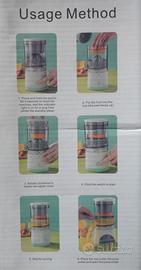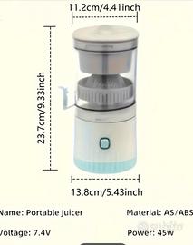 Ottimo prodotto, nuovo mai usato, nella sua scatola originale, senza fili elettrici, con batteria ricaricabile con cavo USB, molto pratico e maneggevole, veloce nella sua azione di spremitura.