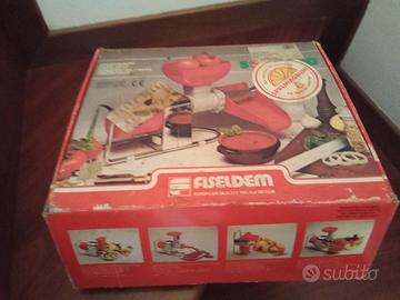 PREZZO RIBASSATO - OCCASIONE! Cedo prodotto multifunzione fieseldem ottimo prodotto usato pochissimo. Spremiagrumi e macchina per passato di pomodoro "solemio"con confezione e pezzi tutti originali. Prodotto di qualità. Cedo per inutilizzo causa prodotto doppione. Ritiro a carico dell'acquirente Padova zona Arcella.