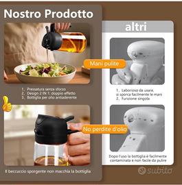 Spruzzatore e distributore di olio 2 in 1, spruzzatore per olio per friggitrice ad aria da 470 ml, bottiglia di olio d'oliva in vetro per cucina, insalata e barbecue (nero)