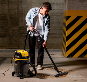 Bidone aspiratutto per solidi e liquidi dotato di funzione soffiante, con fusto raccolta in materiale plastico robusto e resistente