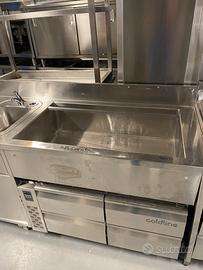 Station barman con base a cassetti refrigerata e motore remoto , le misure le potete trovare in foto , le condizioni sono ottime ne disponiamo di due esattamente uguali.