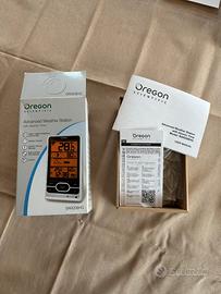 Stazione meteorologica scientifica. Modello: Oregon Scientific BAR 208HG Dotata di display digitale con retroilluminazione arancione. Misurazione temperatura interna ed esterna, pressione atmosferica (barometro) ed umidità (igrometro). Orologio radiocontrollato, sveglia, indicazione della previsione meteorologica. Ottime condizioni e perfettamente funzionante e provvista di scatola e istruzioni originali. 1 Sonda wireless esterna inclusa. - Funzione orologio e sveglia - Indicatore di temperatura interna ed esterna (termometro). - Indicatore di umidità (igrometro) - Indicatore pressione atmosferica (barometro) - Previsioni meteo 12+ ore. - Indicatore fase lunare. - Funzione IC