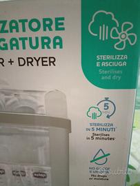 Sterilizzatore più asciugatura della Chicco. Usato solo un paio di volte, praticamente nuovo. Vendo per inutilizzo. Si può usare a pieno carico o compatto. Possibilità di 4 programmi, con partenza ritardata. Facilissimo da utilizzare.
