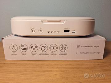 Sterilizzatore UV con possibilità di ricarica wireless e USB per telefono o tablet