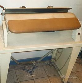 Stiratrice a rullo Siemens elettrica vintage, anni 60, ideale per uso domestico. Le dimensioni della macchina sono 82 cm in larghezza, 42 cm in profondità e 95 cm in altezza. Il rullo misura circa 65 cm nella sua larghezza e le due estremità sono libere per capi tubolari, tovagliato e lenzuola. Usato in buono stato di conservazione e funzionante. Si stira da seduti, con minore sforzo fisico. Utile per chi difficoltà a mantenere la stazione eretta.