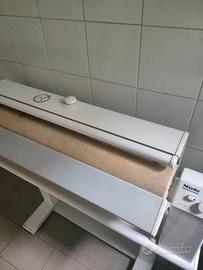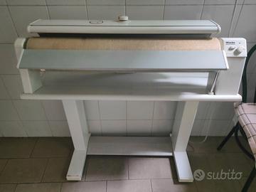 stiratrice professionale con diametro rullo 160mm larghezza di lavoro 830 mm, materiale alluminio , avvolgimento rullo di lunga durata ,panno in telo aramid resistente al calore, si stira comodamente da seduti