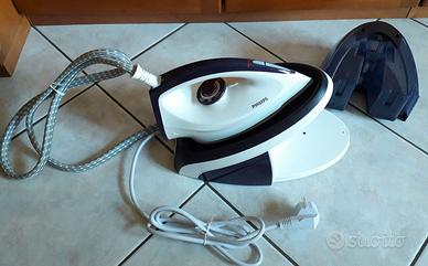 Ferro da stiro con generatore di vapore della Philips, piastra del ferro in ceramica, serbatoio dell’acqua estraibile da 1,1 litri, notifica di avviso per la pulizia dell’anticalcare con bacinella in dotazione, praticamente come nuovo, usato pochissimo, scontrino d’acquisto per la garanzia con data 06-2024