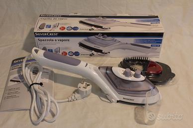Spazzola e stiro a vapore SilverCrest. Completo di vari accessori. Piastra con rivestimento antiaderente. Per stirare leggermente anche in verticale, vaporizzare con getto di vapore, ravvivare stoffe, spazzolare e rimuovere pelucchi dai tessuti. Serbatoio d’acqua incorporato da 70ml. Cavo elettrico lunghezza 3mt, con schermatura di sicurezza anti calore. Termostato regolabile e luce di indicatore riscaldamento. Appoggio integrato per pause. Consumo max 1000W. Si riscalda in circa 2 min.