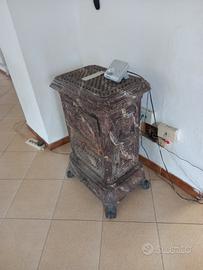 stufa a legna antica fine 1800 inizio 1900 in ghisa di altissima qualità smaltata con sistema speciale per l'epoca, oggetto da semiantiquariato. funzionante