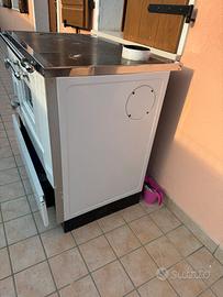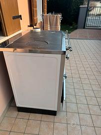Stufa a legna con pietra (interna) nuova, dotata di cassetto inferiore portalegna, grande forno interno e piastra superiore.