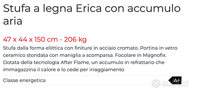 Stufa a legna con accumulo modello ERICA ditta Palazzetti 10 Kw .