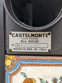 stufa a legna Marca CASTELMONTE mod. Isolda con ceramiche decorate mod. Cerreto.