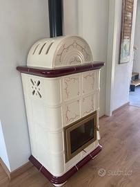 Stufa a legna con maiolica usata una stagione per passaggio a pellet