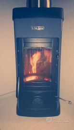 Stufa a legna come nuova. Grande portello per agevolare l’inserimento di grandi pezzi di legno e presa d’aria regolabile per una combustione ottimale. Rivestimento esterno in acciaio smaltato, testata, basamento, porte e controporte in ghisa smaltata. Potenza: 6 kW Peso: 80 kg Scarico fumi: d. 120 Dati principali Condizione: utilizzata solamente due stagioni