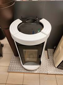 cassetto cenere estraibile, finitura superiore in cristallo nero, valvola di limitazione