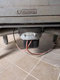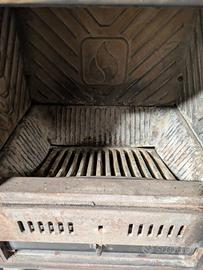 stufa a legna palazzetti in ghisa rivestita in ceramica con ventilazione forzata . Uscita fumi da dietro e da sopra .