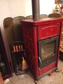Stufa a legna in maiolica e focolare in ghisa
