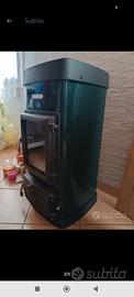 stufa a legna della nordica in buonissime condizioni, vetro nuovo, 6 metri di tubo di diametro 11 cm in acciaio nero satinato e un gomito da 90°