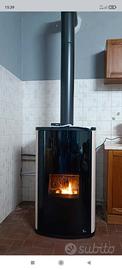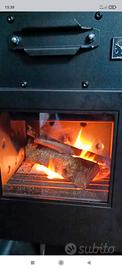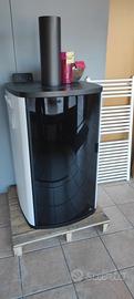 Termostufa policombustibile a legna pellet e nocciolino potenza kW 24 riscaldamento termico e produzione di acqua calda sanitaria, ventilatore aria calda ambiente modulante. Prodotto nuovo in pronta consegna!