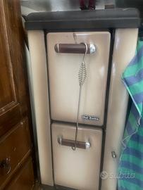 Stufa a legna bruciatutto "Petit", rivestita esternamente in acciaio smaltato porcellanato color cappuccino. Presenta una grande attenzione nei particolari, maniglie in legno e le rifiniture in acciaio cromato. La testata della stufa è in ghisa smaltata, utilizzabile come scalda vivande. Il focolare è interamente rivestito in refrattario.