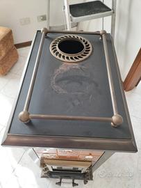 stufa a legna con rivestimento in piastrelle di maiolica tenuta bene