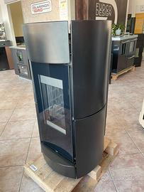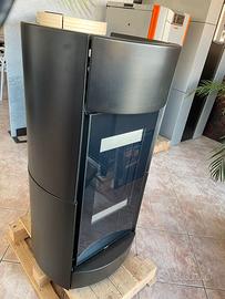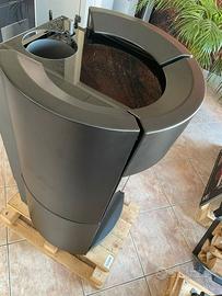 Stufa a legna 11,4kW (canalizzabile con AIRBOX-optional *)con efficienza superiore all’87,1%, camera di combustione in ghisa, aria primaria, secondaria e terziaria, porta e controporta in ghisa, ampio vetro ceramico