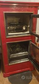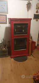 Stufa a legna tipo “Stube” in maiolica rossa, con forno incorporato, marca “Piazzetta”, anno 2000. Dim. Cm 78x63x144,5 h. Disponibile per consegna a domicilio in Veneto.