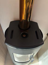 stufa a legna usata solo 2/3 volte in ottime condizioni, fornisco pure le tubazioni in acciaio inox come da foto. Scalda fino a 75 mq. (la stufa può essere visionata dopo accordo).