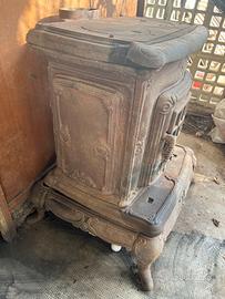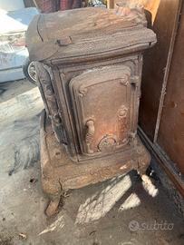 stufa a legna VINTAGE in ghisa, intera, no crepe, no rotture, solo da riverniciare e usare. Ideale anche come arredo con solo una pulita. Solo consegna a mano.