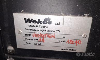 Vendo stufa a legna marca WEKOS modello “Venetien” in condizioni impeccabili, usata pochissimo. Stufa molto potente, sviluppa ben 14 kW di potenza. Viene venduta completa di tubi e una curva a 90 gradi. Dimensioni: H 107, L 69, P 54 cm. Diametro uscita fumi: 150 mm Peso: 240 kg Posso trasportarla nel raggio di 100 km da Torino o spedirla nel resto d’Italia.