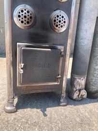 Vendo Stufa a legna a 6 condotti in ghisa e rifiniture in acciaio nichelato completa di condotto fumario con valvola di limitazione portata fumo
