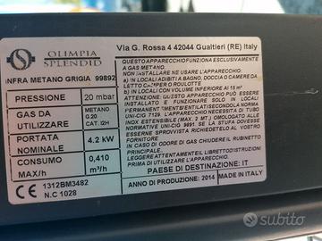 Vendo OLIMPIA SPLENDID, Stufa a Gas Metano-Infrarossi da Parete o Pavimento, Potenza 4 kW-100mc, colore Grigio, ottime condizioni, perfettamente funzionante. Tel. 3339431561