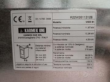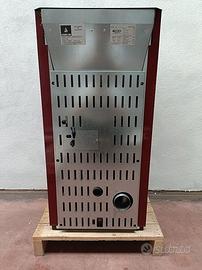 Stufa a pellet con mantelli in acciaio, di colore rosso, potenza 11,6kW, nuova nel suo imballo originale, proveniente da sala esposizione.