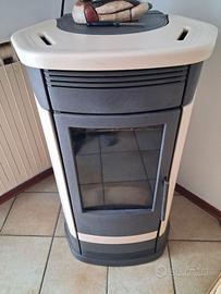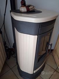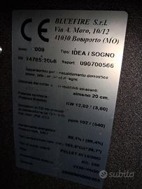 marca BLUE FIRE, costruita da azienda artigiana del territorio. potenza 12 kw. troppo grande per il mio appartamento, fa troppo caldo, passo a stufa con potenza minore. tutta in ghisa all' interno, ceramiche colore beige all' esterno. perfetta molto bella. unica pecca funziona solo una ventola dell' aria, volendo si potrebbe sostituire la seconda ventola.