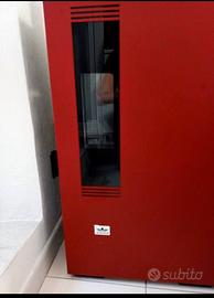 Potenza termica nominale 4,4 kW, rendimento 89-92 %, 4 stelle, superficie riscaldata 50 mq, uscita aria posteriore (opzionale superiore e laterale), top e struttura in acciaio, camera di combustione sul lato, colore bordeaux, porta in acciaio, braciere in ghisa, capacità serbatoio 11 kg, consumo (min/max) 0,49-1,0 kg/h, diametro scarico fumi posteriore 80 mm, programmazione giornaliera con telecomando opzionale, L740xP280xH880 mm, peso 48 kg.
