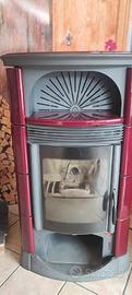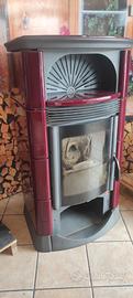 Stufa a pellet Ecotherm 8000 Thermorossi, ventilata, rivestimento in maiolica rosso bordeaux, usata revisionata perfettamente funzionante. Pronta consegna!