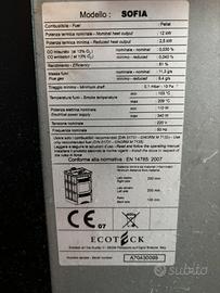 Vendesi stufa a pellet Ecoteck Sofia, potenza nominale 12kW. Unico difetto nella pulsantiera che non funziona benissimo, ma si può utilizzare il telecomando in dotazione….