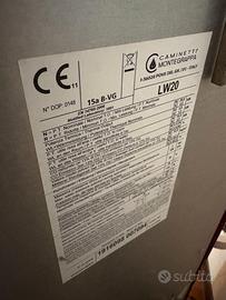 Stufa a pellet idro Montegrappa, modello LW-20. Usata due stagioni. Porta da sostituire. Comprensiva di camino esterno. Ritiro in loco.