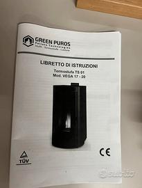 Termostufa a pellet greenpuros modello vega 20, stufa per collegamento all’impianto di riscaldamento,termosifoni. Stufa nuova usata solo per una settimana, vetro curvo perfetta in tutto, dotata anche di ventola per aria calda. Stufa da 20kw, ideale per appartamento