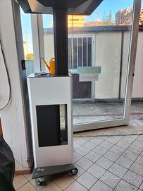 Stufa a pellet Laminox Hot Spot 16 Kw, da esterno, funziona senza corrente, ideale per verande, tettoie, portici ecc. E' munita di ruotine per uno spostamento versatile e veloce.