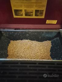 carica 20 kg di pellet e può funzionare contemporaneamente anche con legna...o solo legna o solo pellet.